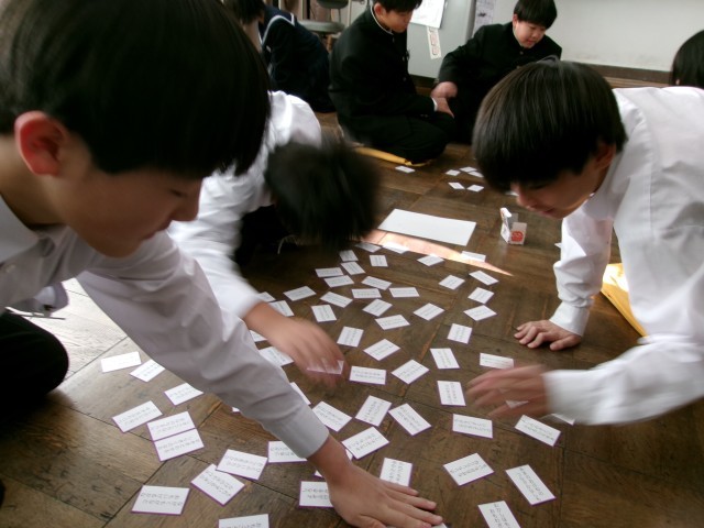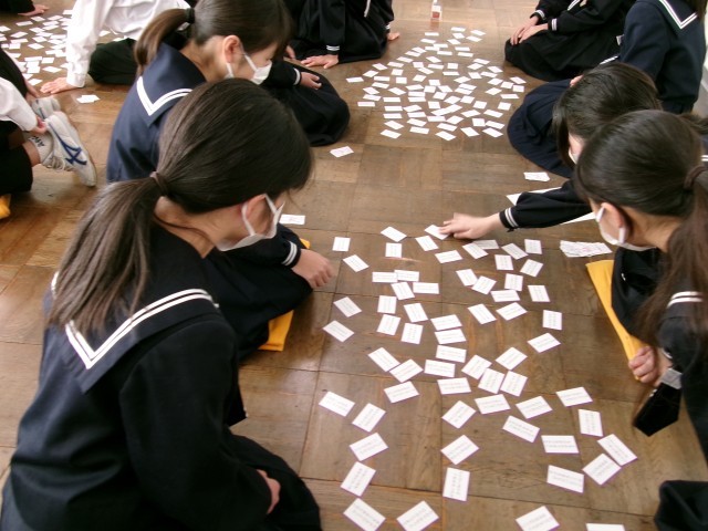 生活班とは異なるグループで百人一首を行っていました。歌を覚えたり、慣れてきたりで、札を取るスピードが速くなっています。