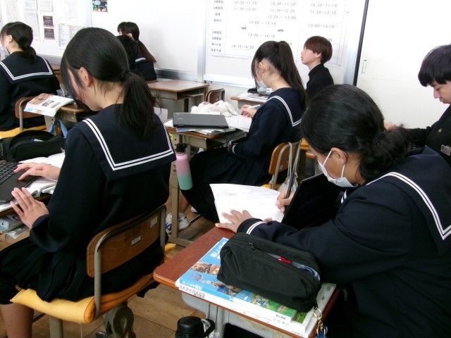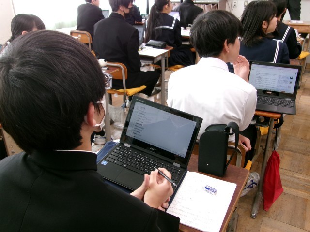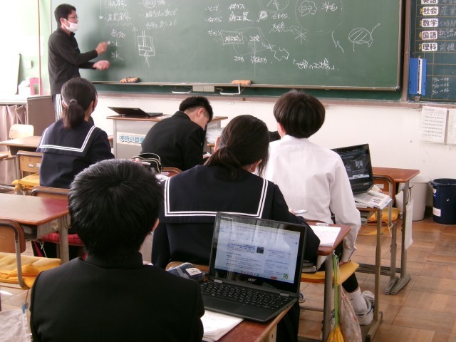 産業革命について学習しています。時代背景、人々が求めたこと、どんなことが起きたのか…教科書を見たり、先生の説明を聞いたり、ChromeBookを使って調べたりしながら理解を深めていました。