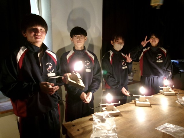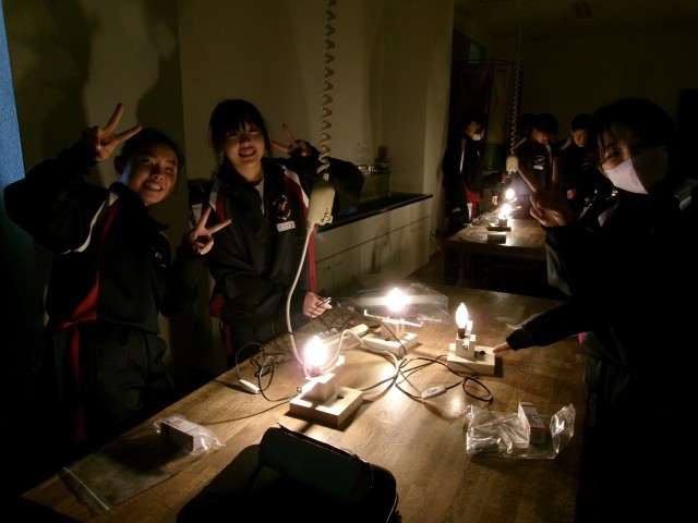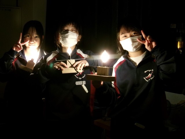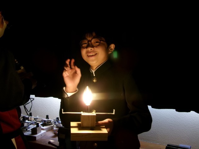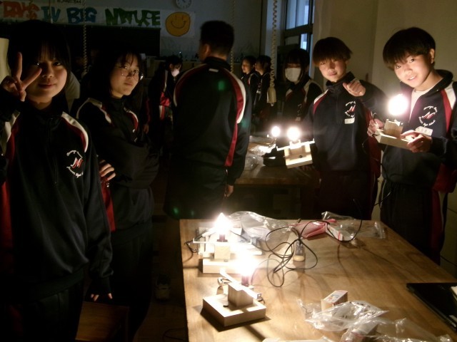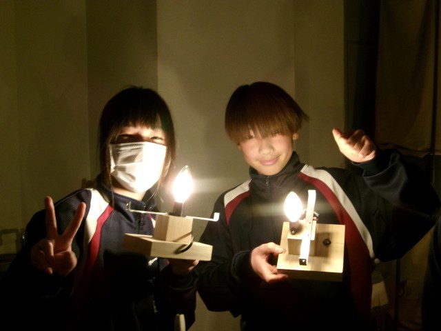 ドームライトの点灯式です。安全に十分注意して、みんなで一斉にスイッチを入れました。完成間近ですね。