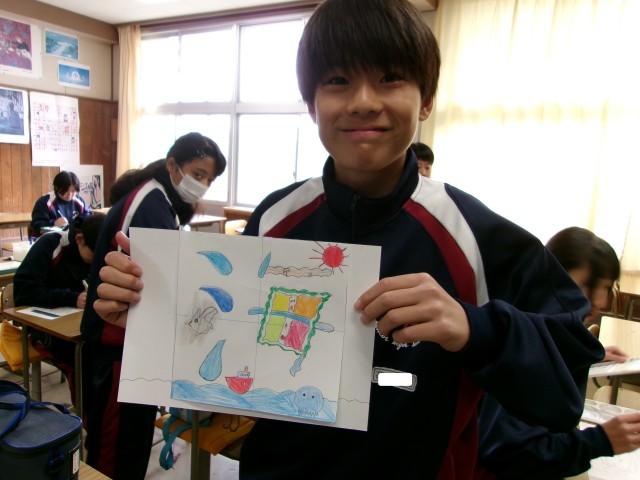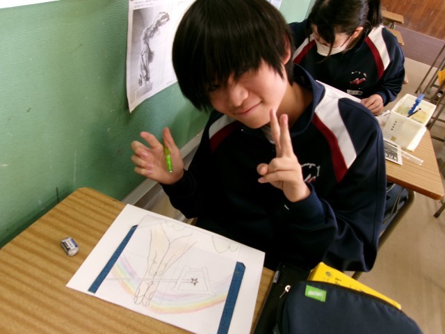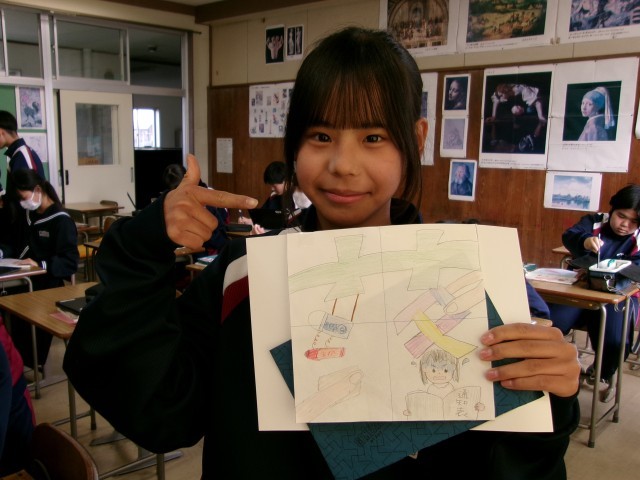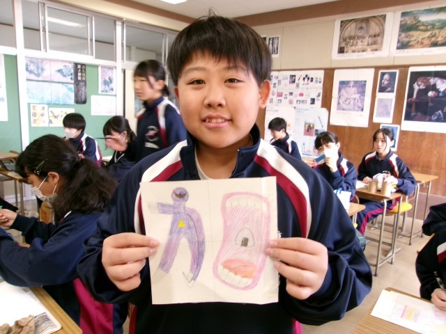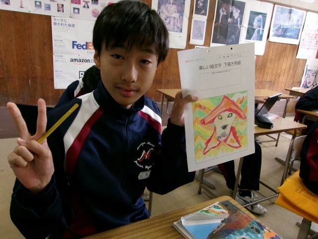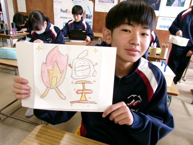 絵文字を作成しています。漢字1文字に、自分がイメージするイラストを加え、オリジナルの作品に仕上げます。豊富なアイディアに感心します。
