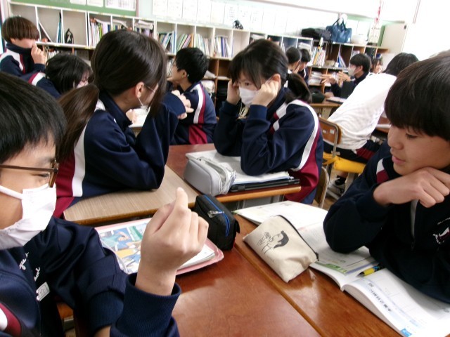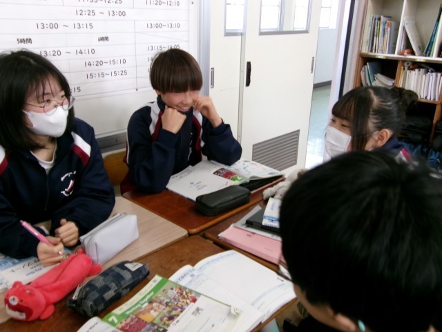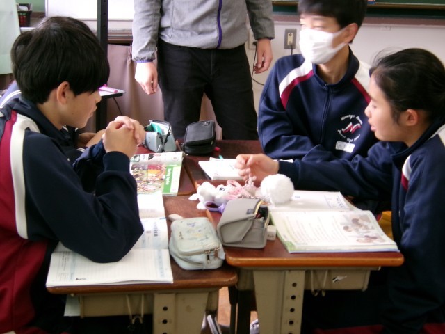 出題者は、先生から出されたお題を、英語のみを使って回答者(ペア)に説明します。すぐに答えるペアもあれば、苦労しているペアもあります。