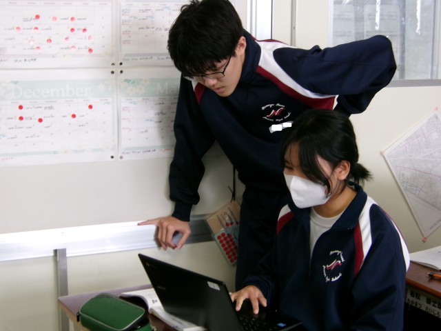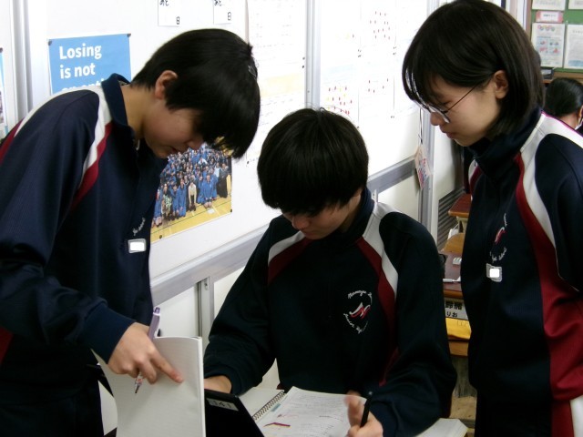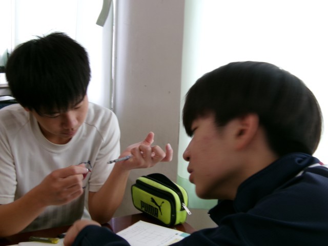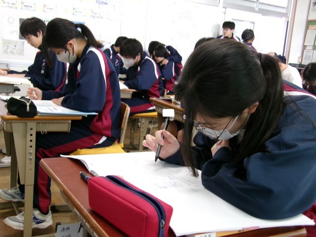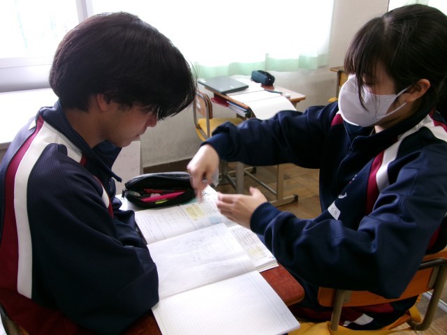 3年間のまとめで、図形の問題にチャレンジしていました。助け合い、全員が正答を導き出せるようにがんばっていました。