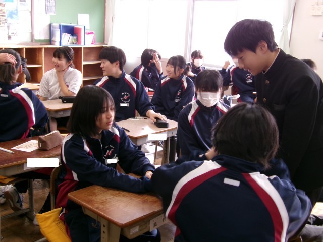 冬休みの出来事を、友達と楽しそうに話しています。