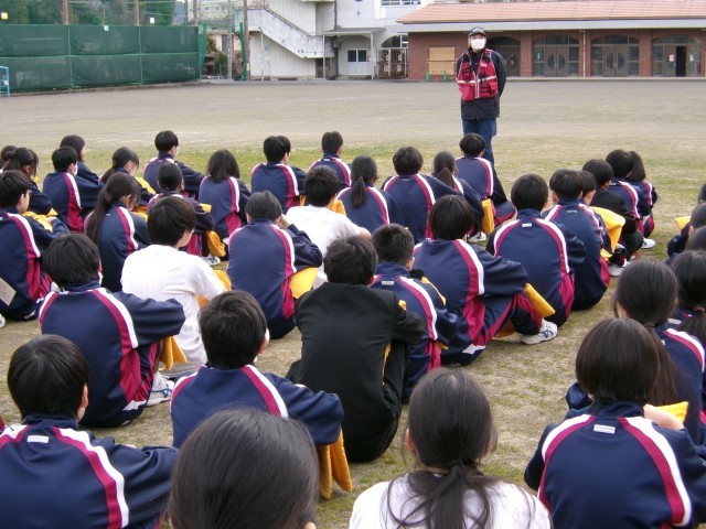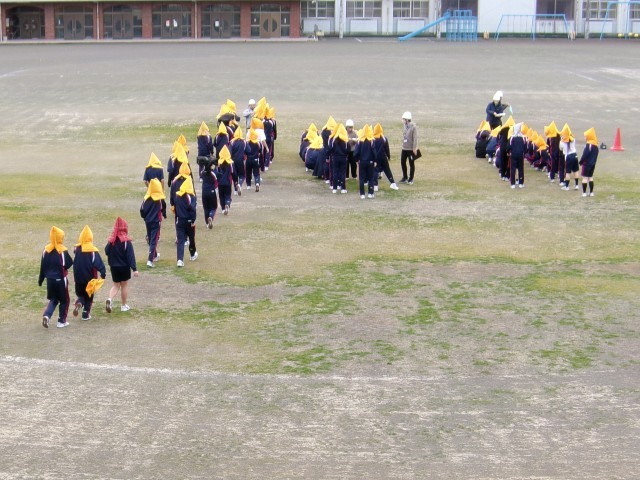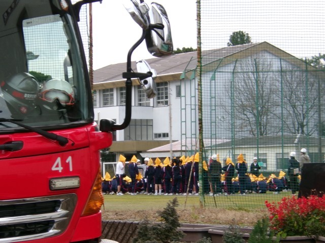 火災を想定した避難訓練を行いました。整然とグラウンドに避難し整列しました。