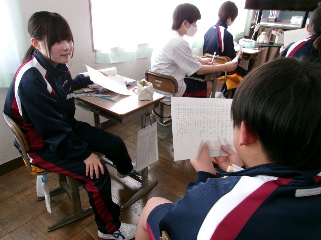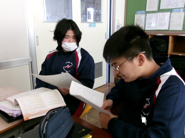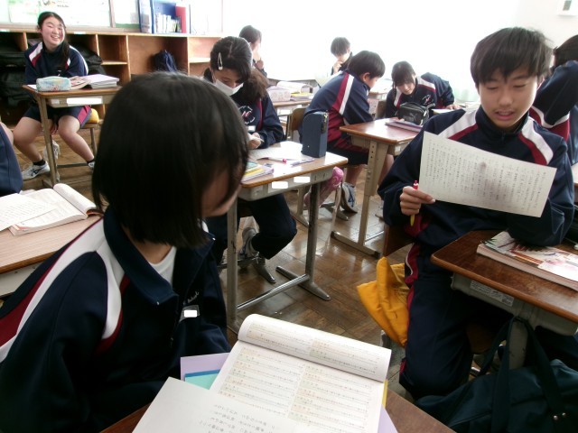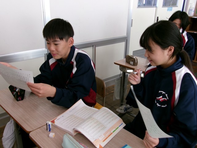 「百人一首」プリントに書き出した歌の、上の句をペアに出題しています。下の句をスラスラと答えるようすがあちこちで見られました。学習の成果を感じました。