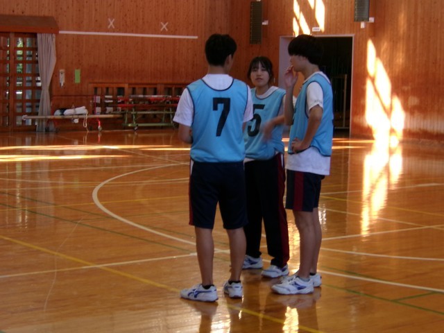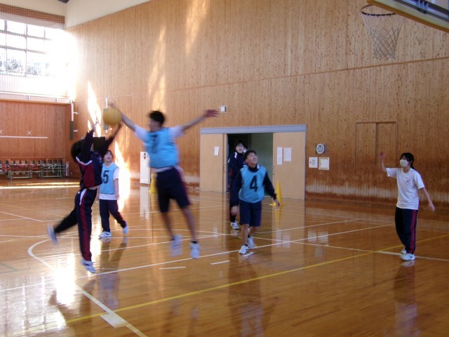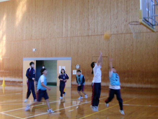 バスケットボールのゲームを行っています。のびのびと体を動かし、楽しそうにプレイしていました。