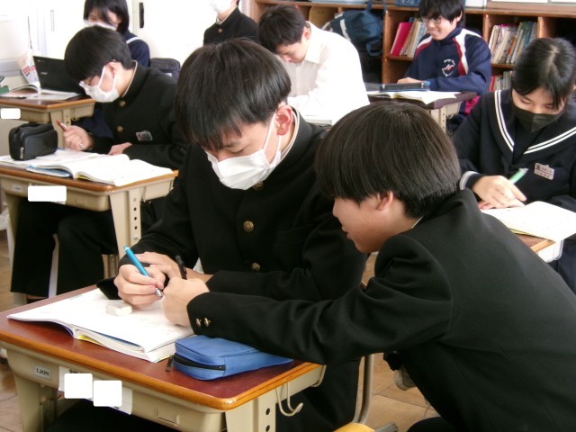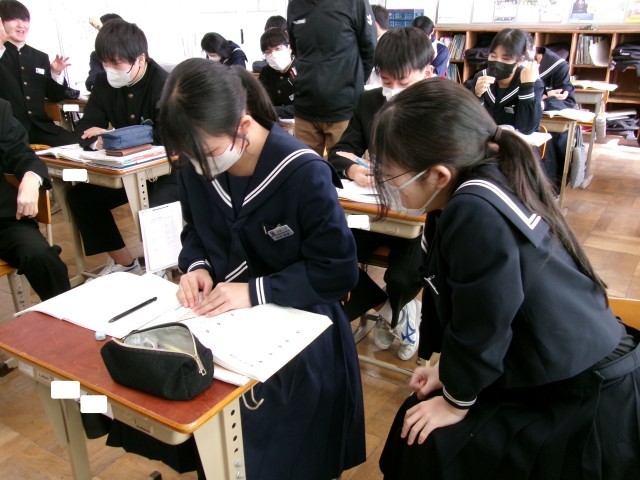 問題演習のようすです。これまでの学習を生かして、いろいろな種類の問題にチャレンジしています。