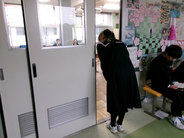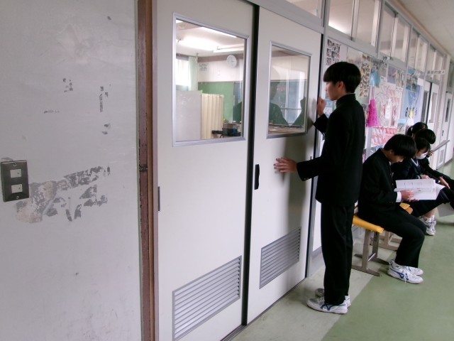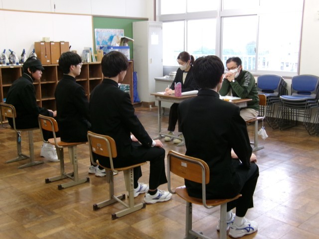 高校入試に向け、3年生の面接練習を行いました。3年生の表情は、学級での練習とは異なる緊張感がありました。練習の成果を、本番で発揮できるようにしてくださいね。