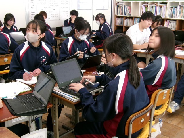 東京大都市圏のくらしや特徴について、調べたことを発表していました。沼津で暮らしている生徒には想像できないようなことがいくつもあり、そのたび驚きの声が上がっていました。