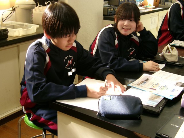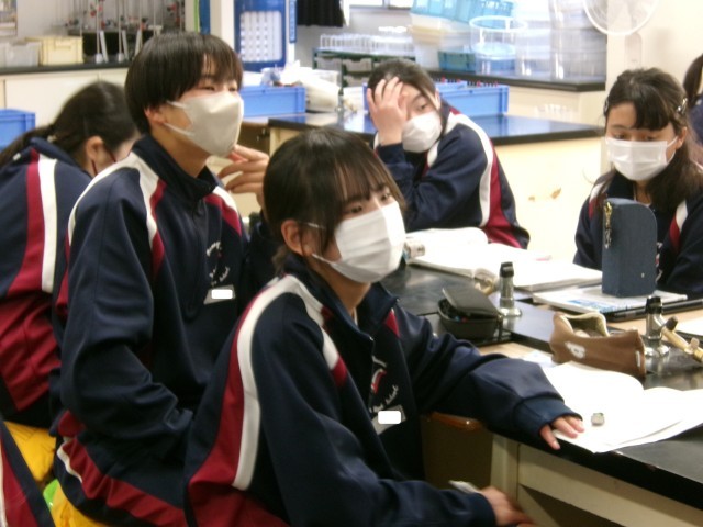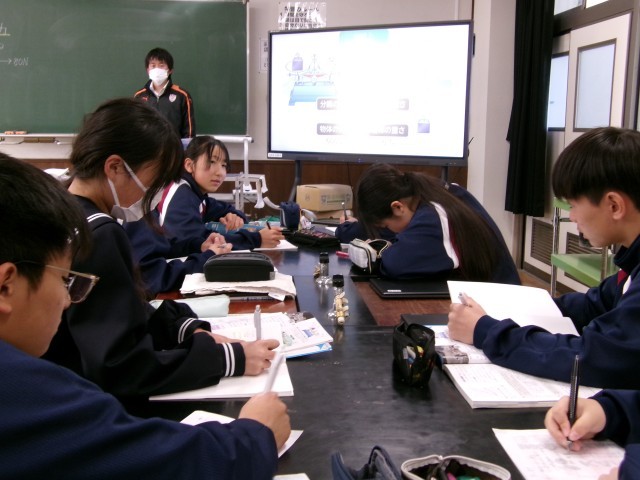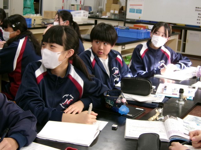 重さと質量について学習しています。重さは物体にはたらく重力で、場所によって異なりニュートンという単位であらわされること、質量は物体そのものの量で、グラムやキログラム等の単位であらわされること、興味深く説明を聞いていました。