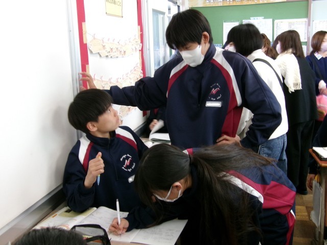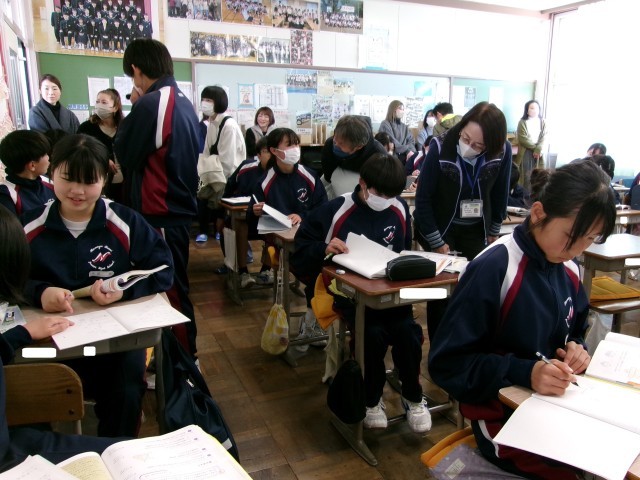 5時間目は授業参観。立体の表面積や体積のまとめの問題にチャレンジしています。仲間と協力し1問でも多くの問題を解こうとがんばっていました。