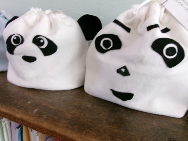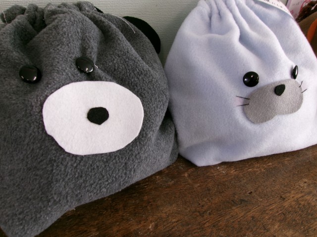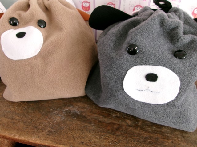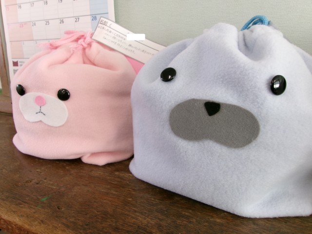 家庭科の授業でつくった小物入れが教室に並んでいました。表情が豊かです。