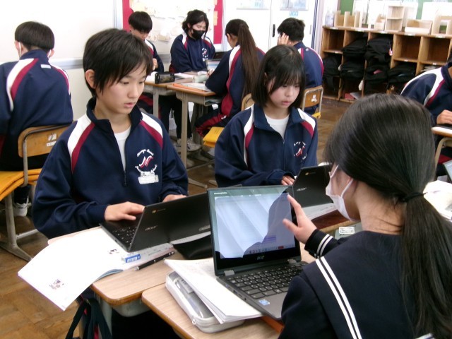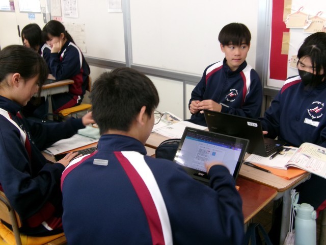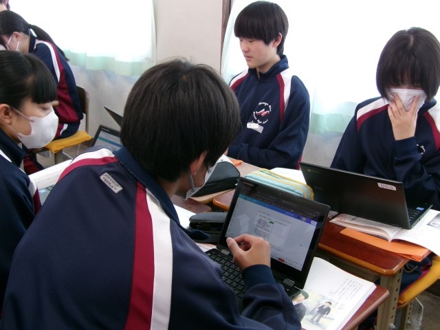 「裏庭での出来事」資料を読み、自分の経験と重ねて話すようすがありました。主人公の立場で、自分ならどうしたか、グループで話し合っています。