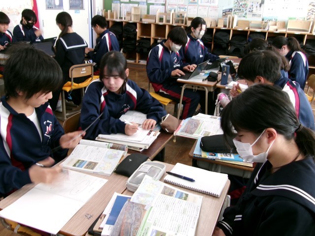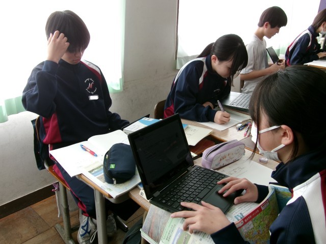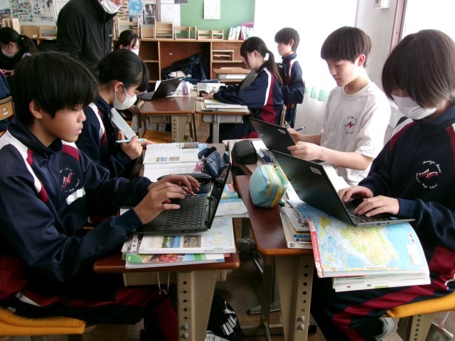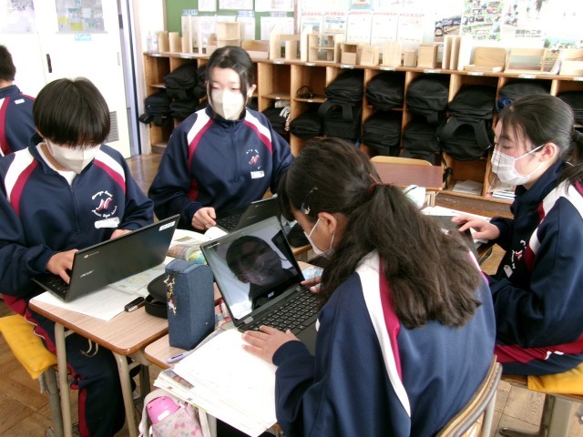 オーストラリアの輸出入相手国の変化について、資料を見ながらグループで話し合っています。