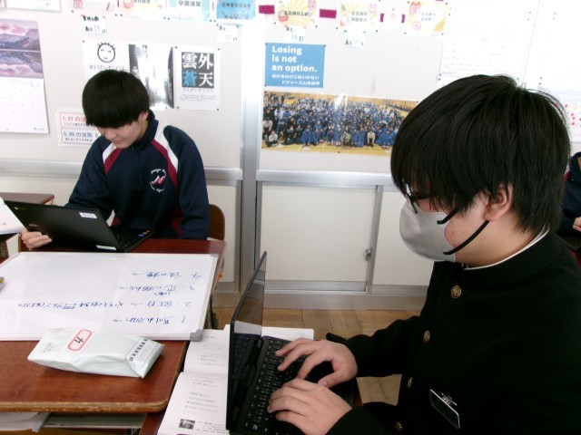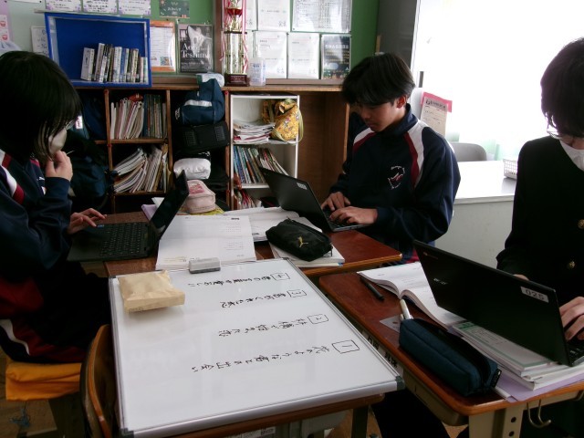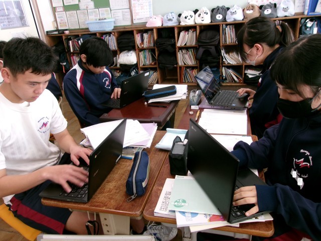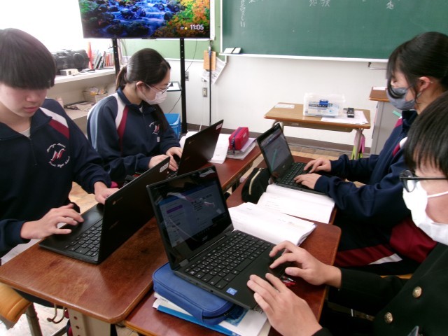 「初恋 島崎藤村」個人の担当を決め、連ごと口語訳をまとめています。ChromeBookで仲間の文を見たり、先生に相談したりしながら、それぞれの口語訳が徐々にできあがってきました。