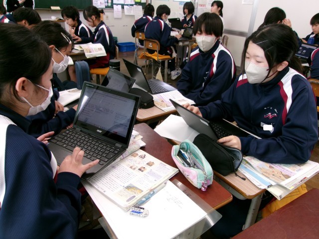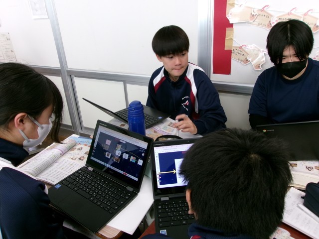 個人で調べた戦国大名レポートをグループの仲間に発表しているところでした。