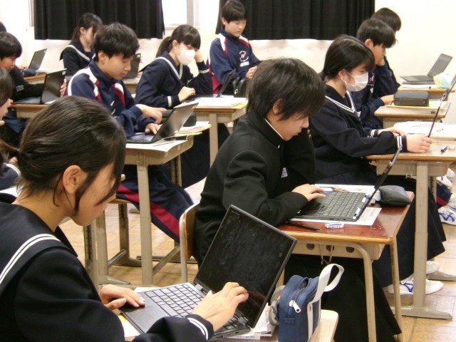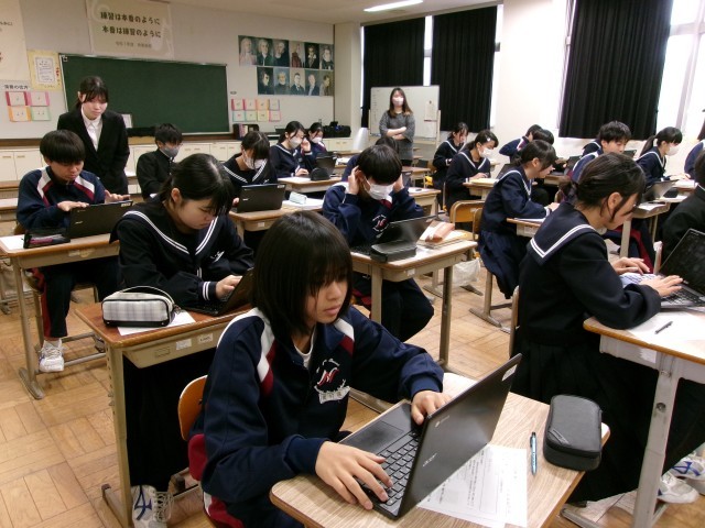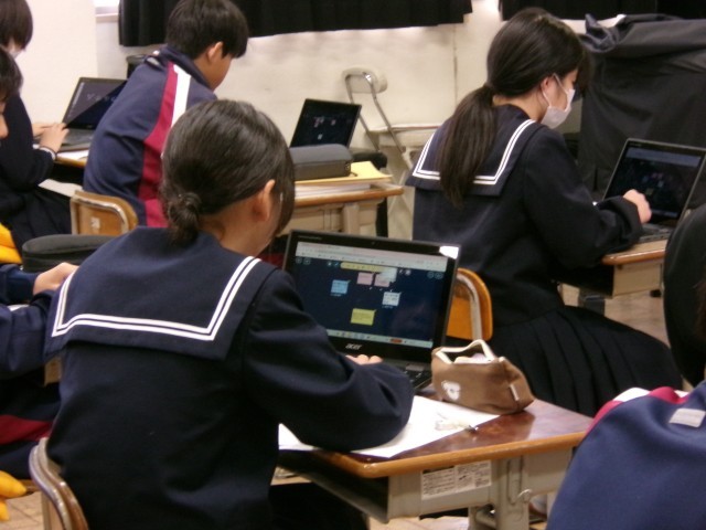 「日本の伝統的な楽器に触れよう」と題して「六段の調 八橋検校」を聞き、感想をChromebookにまとめています。