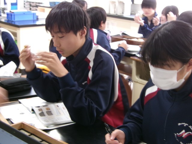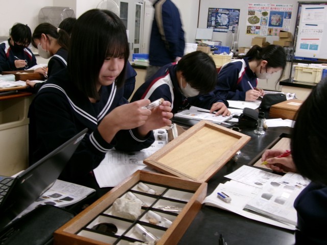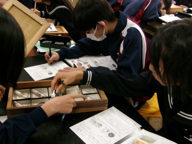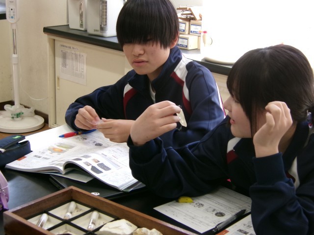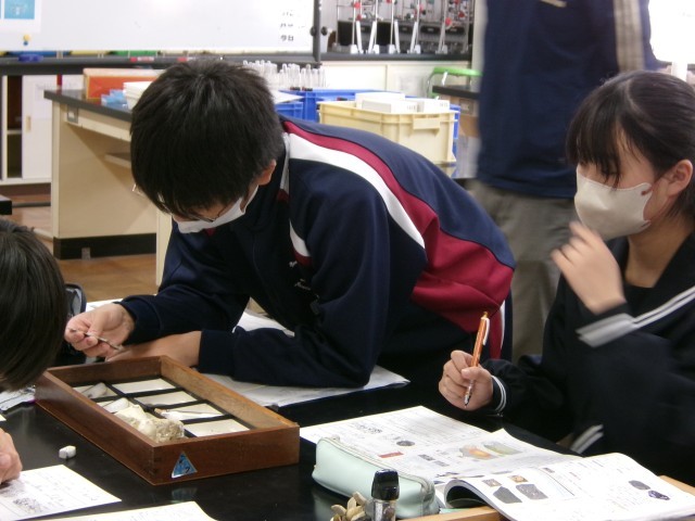 火成岩について、標本を見たり、特徴を調べたりしていました。