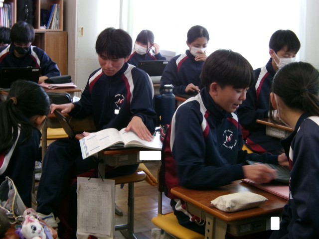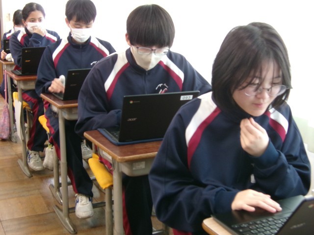 ChromeBookを開き、生成AIによって作られた英語の問題を解いたり、英単語のしりとりの勝負をしたり、いろいろな使い方を試していました。
