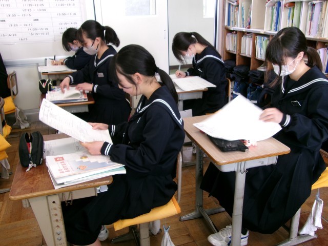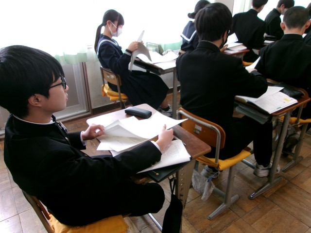 1年間のまとめの問題を解いたり、春休みの課題を確認したりしているようすです。「いろいろな問題を解いたなぁ」と振り返る声が聞こえてきました。