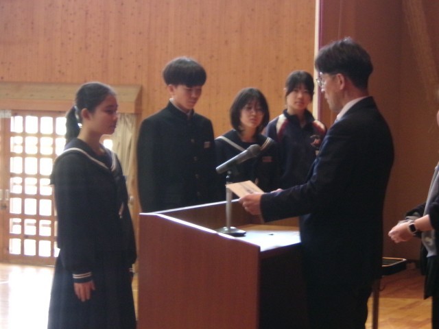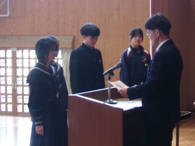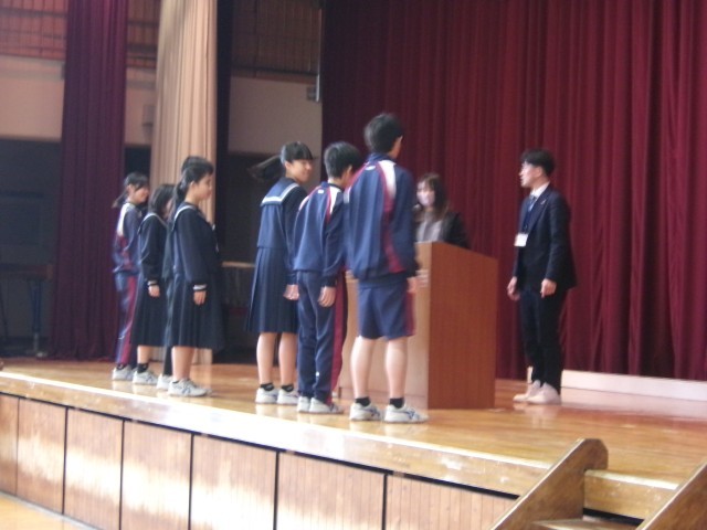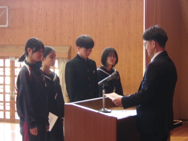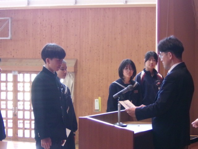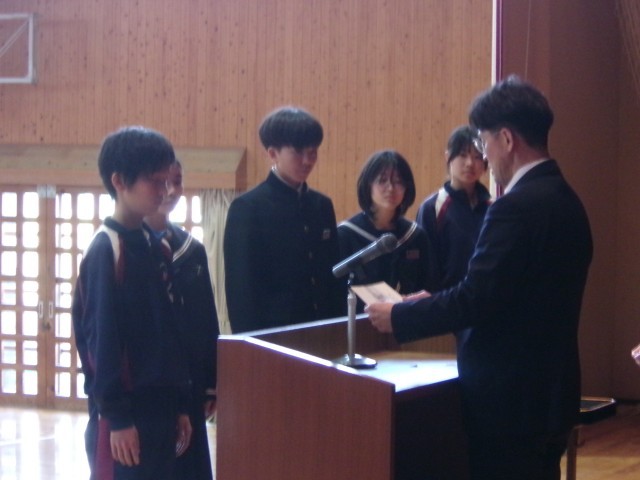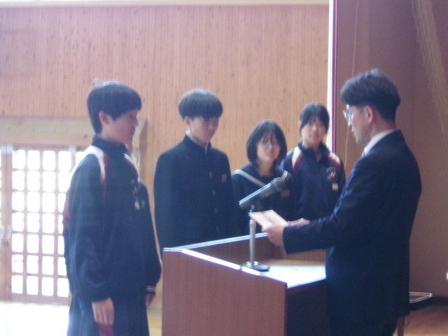 先日の3年生に続き、1・2年生の松かげ賞の表彰が行われました。受賞者のみなさん、おめでとうございます。松かげ賞のプライドを持って生活してくださいね。