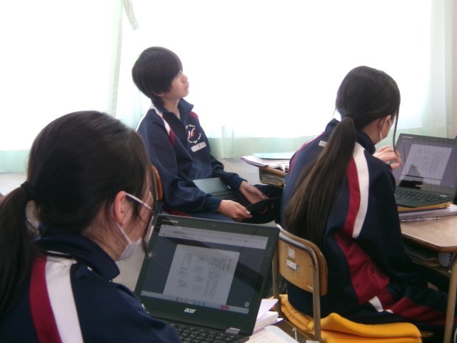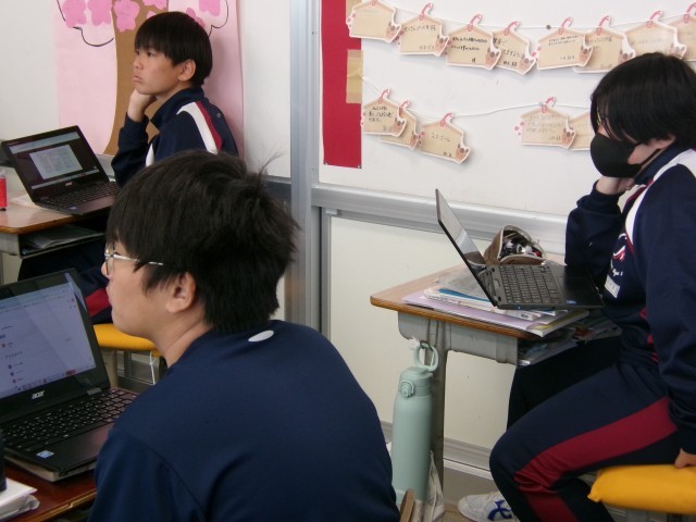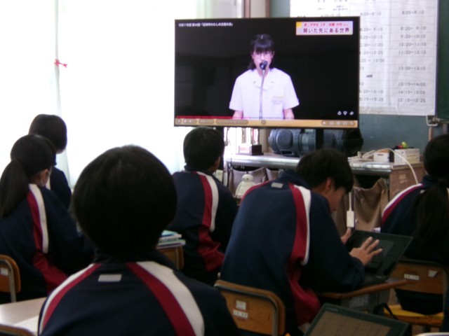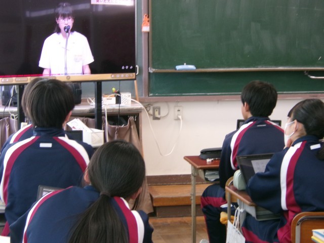 わたしの主張作文作成の第一歩として、昨年の市内大会に参加した先輩の発表動画を見ています。