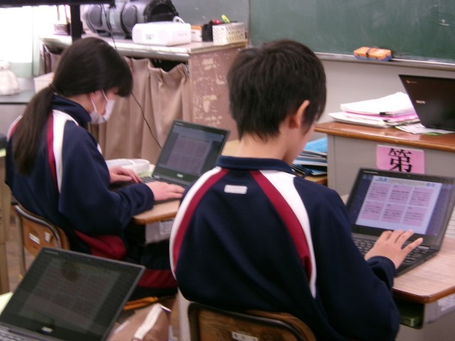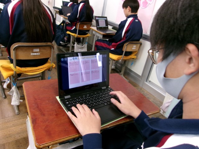 「沼津の特産物をアピールしよう」スライドを使ってグループでプレゼンを行っていました。
