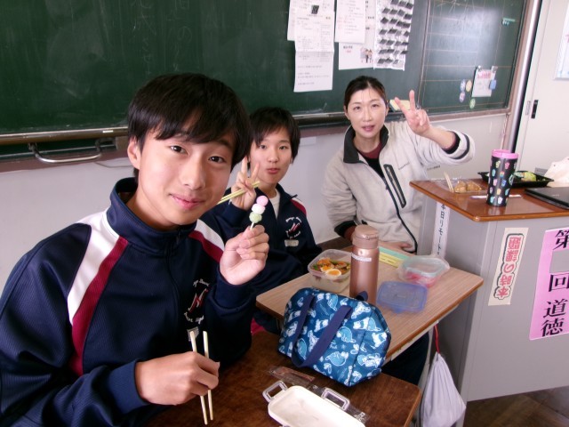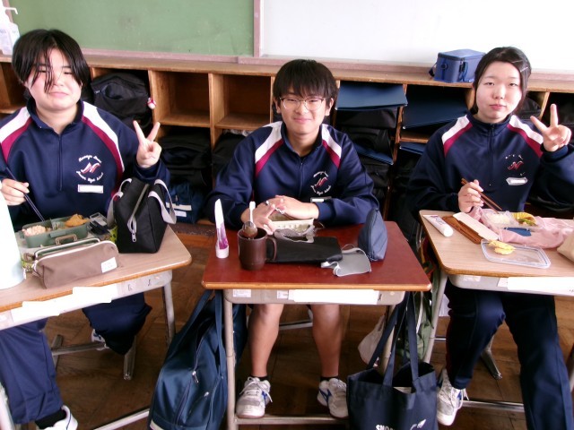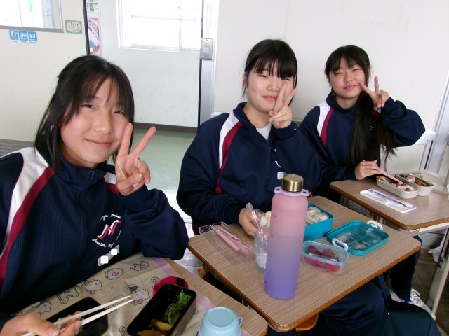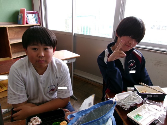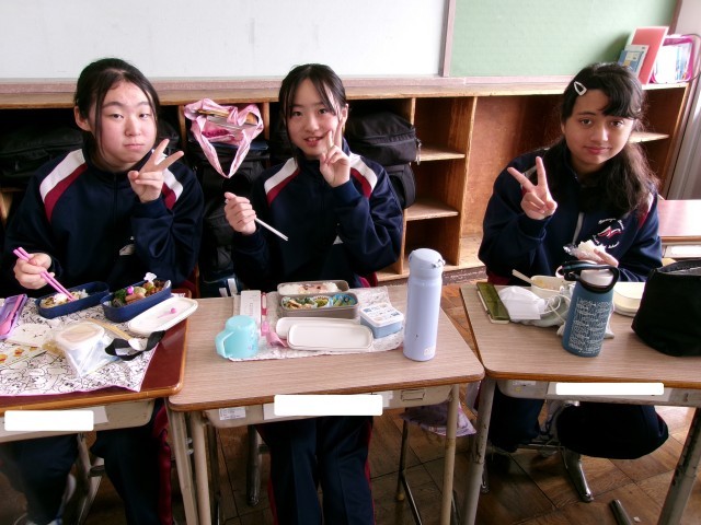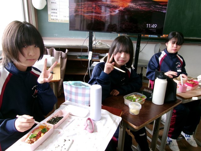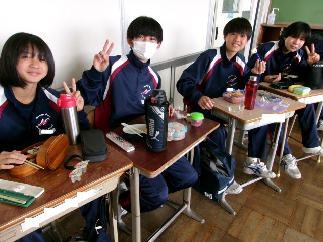 お弁当の時間に教室にお邪魔しました。笑顔あふれる1-1のようすです。