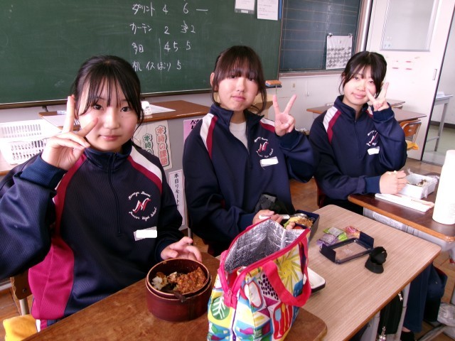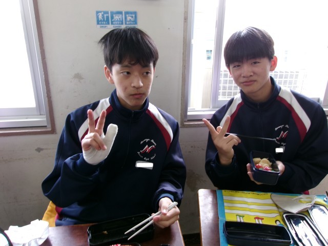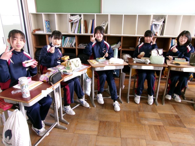 2-1のお弁当の時間のようすです。こちらも笑顔いっぱいです。