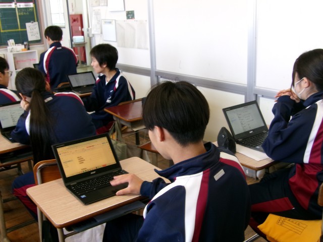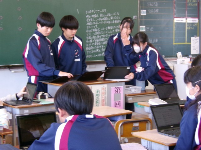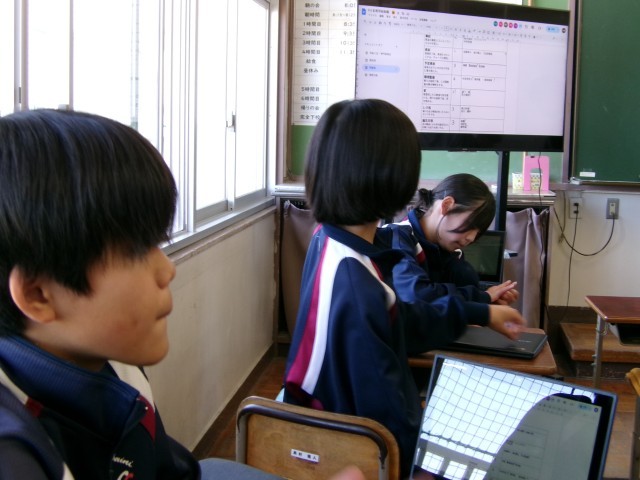 2年生が学級組織を決めているようすです。ChromeBookを使いこなし、手際よく活動していました。