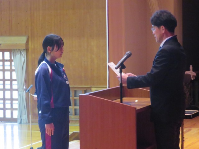 選挙管理委員長と学級委員の任命を行いました。クラスのため、学校のために、力を発揮してください。