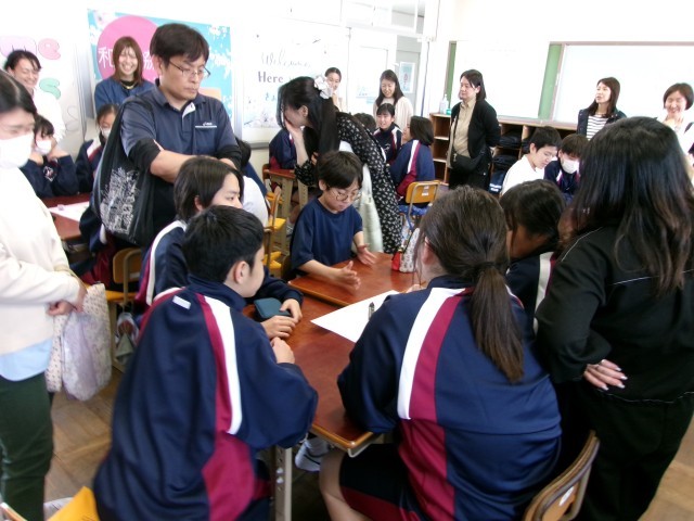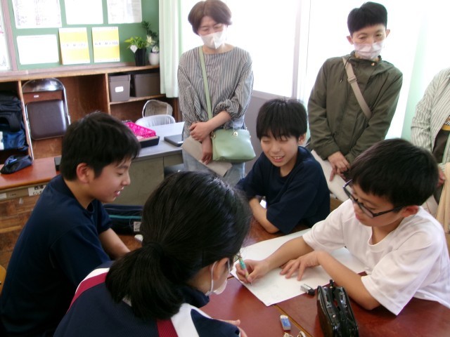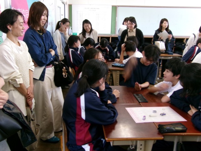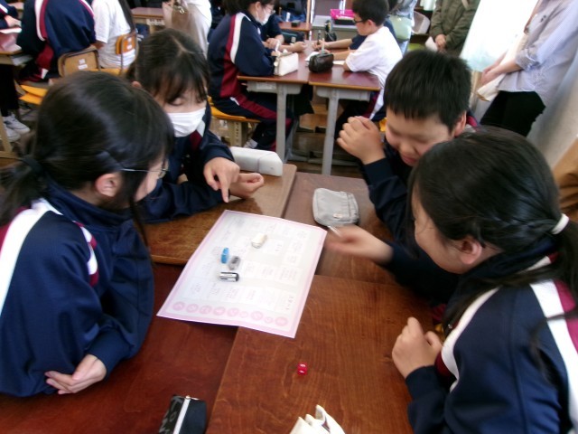 午後、保護者の参観授業を実施しました。グループエンカウンターとして、班に分かれてスゴロクをしているところです。元気いっぱいの1年生のようすです。