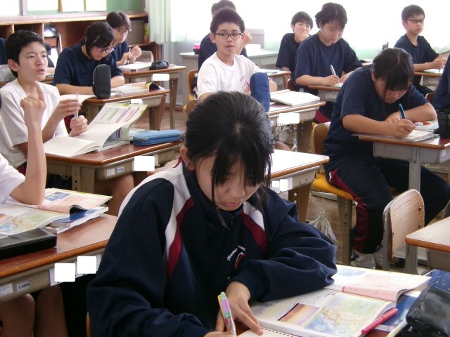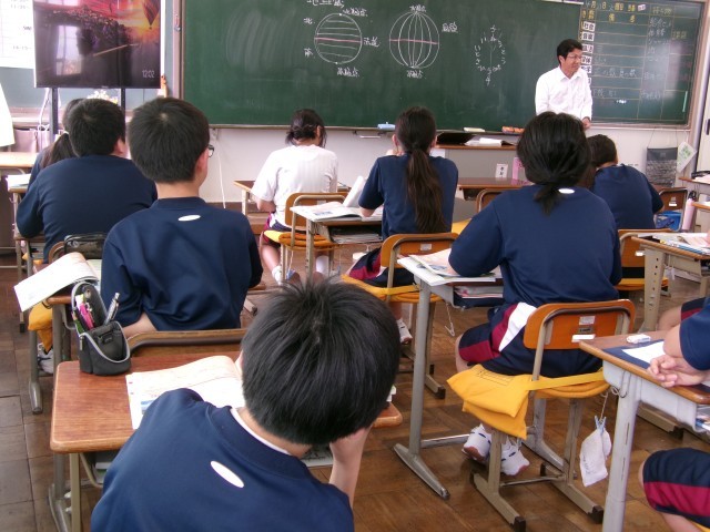 「気球上の位置を表そう」地球儀に用いられている言葉を先生が説明すると「あ~、なるほど」という声が上がっていました。