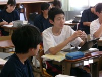 1・2年生合同で、松かげ合宿のグループの顔合わせをしているようすです。