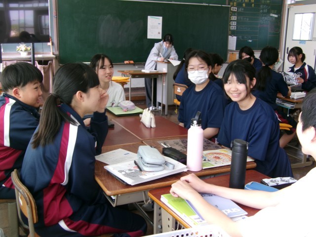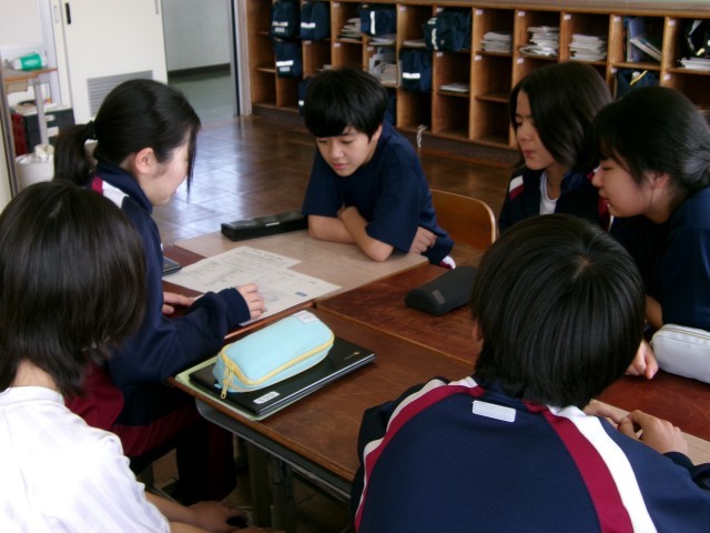1・2年生合同で、松かげ合宿のグループの顔合わせをしているようすです。