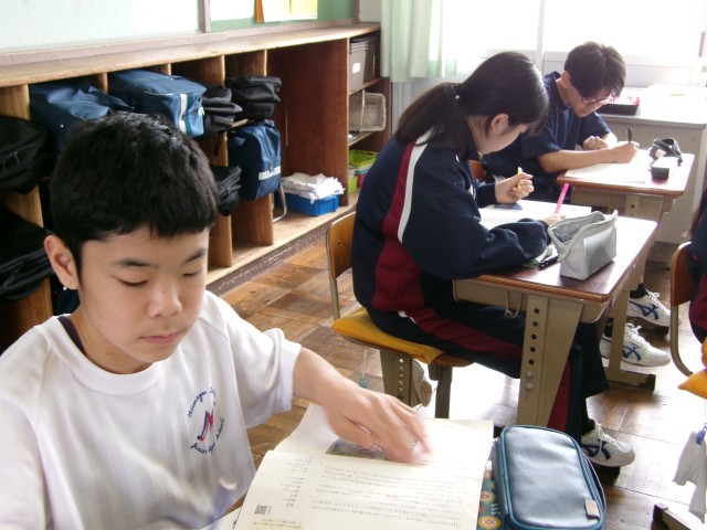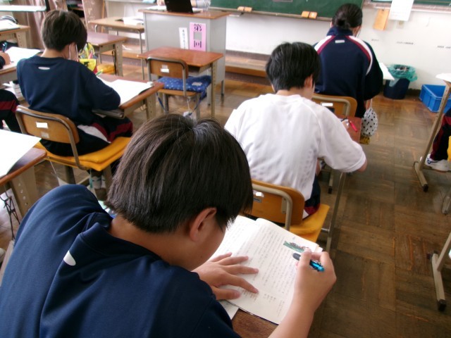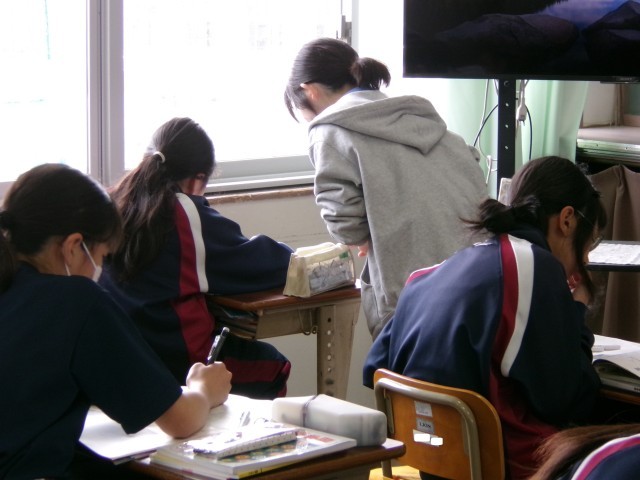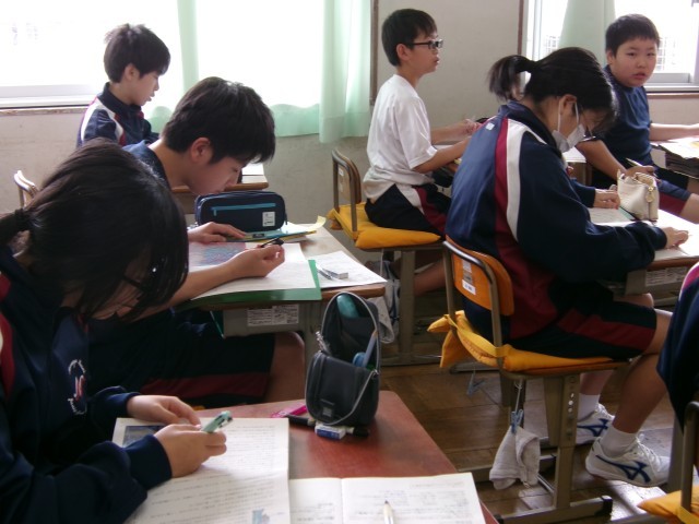 「竜」物語の中からオノマトペ(擬態語、擬声語)を抜き出しているところです。全部でいくつあったか、仲間と話し合うようすも見られました。
