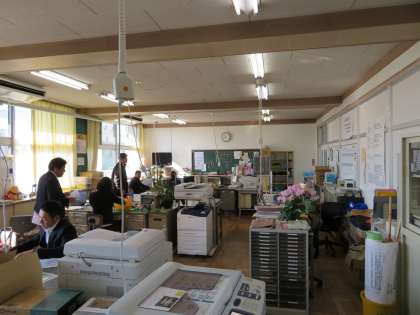 生徒たちは、職員室入室禁止です。また、職員室の配線は、天井からになりました。(今までは床からでした。)