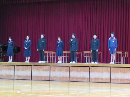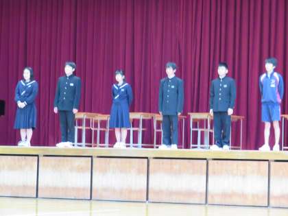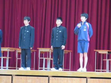 各部の部長さんが、一人ずつ各部の紹介を行いました。どの部活動も人数がぎりぎりで大変です。
