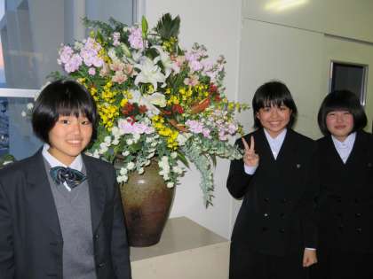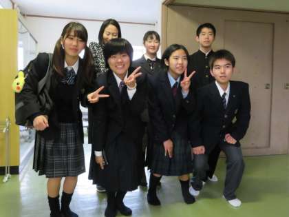 いろいろな高校の生徒が集まり、記念写真を撮りました。すると、また別の高校の新入生も来校しました。