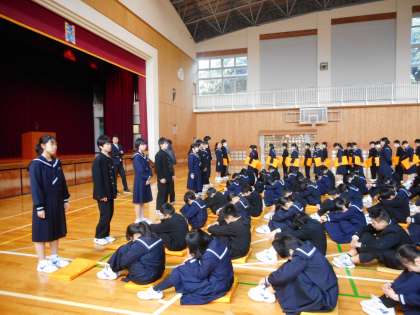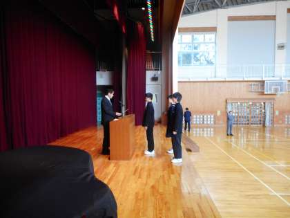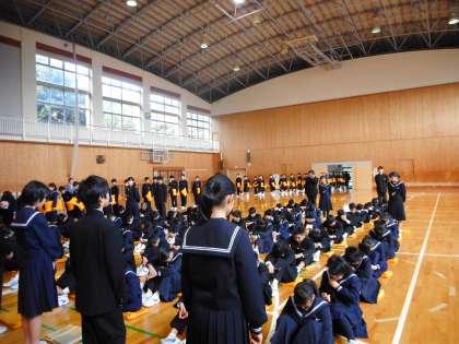 4月13日(木)の朝、体育館にて朝礼が行われました。