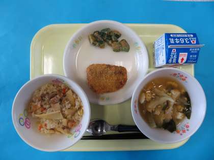 今日は、ふるさと給食の日でした。ふるさと給食の日は、静岡県産や沼津産の食材が使われます。今日のメインは「黒はんぺんフライ」でした。黒はんぺんは静岡おでんにも使われています。