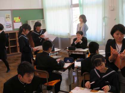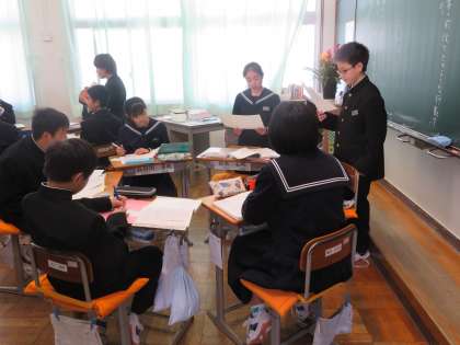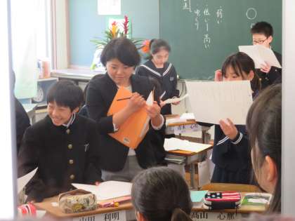 1年2組も、国語の授業でした。6人の学級担任のうち、2人が国語科教員です。