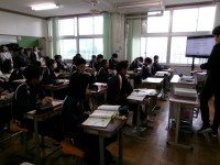 2年2組の給食の様子です。丸くなって楽しそうに給食を食べている班がありました。しっかりとカメラの方を向いて写ってくれた生徒もいます。