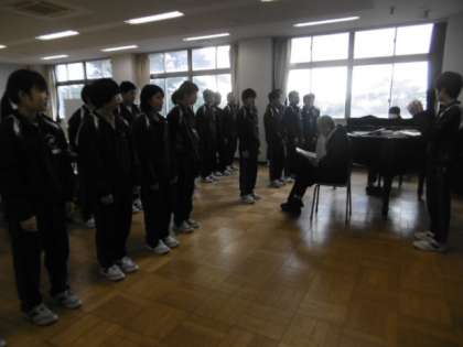 卒業式に向けて合唱曲の練習をしていました。寒い日ですが、大変よく声が出ていました。もうすぐ完成といったところでしょうか。