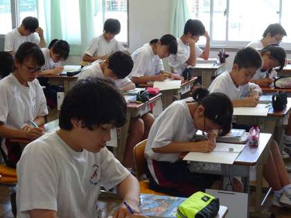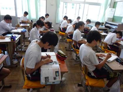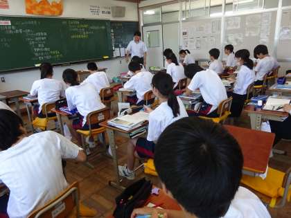 3年2組は社会の授業です。サンフランシスコ条約や日米安全保障条約が話題となっています。