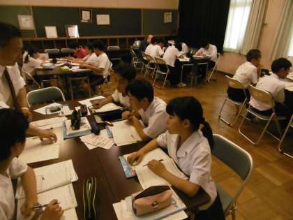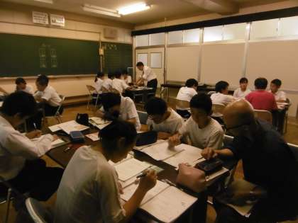今日は第1回目のため、先生方に自己紹介をした後、今週行われる期末テストの範囲を学習しました。わからないことを一生懸命質問している生徒もいました。