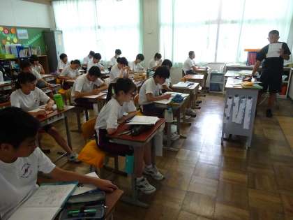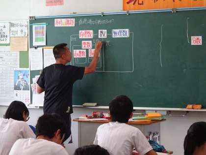 3年1組は数学、「平方根」の授業です。課題は「循環小数は分数になるのか?」です。