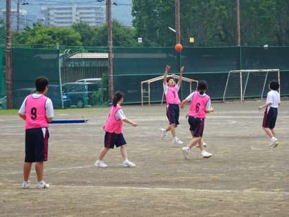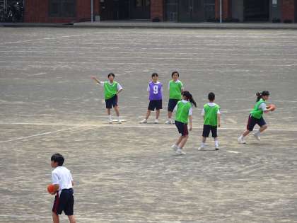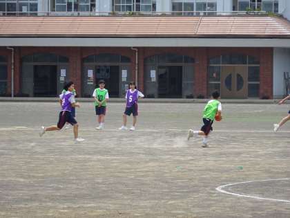 2年1組は体育、「ハンドボール」の授業です。だいぶ慣れてきましたね。