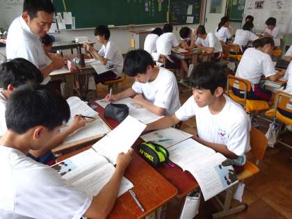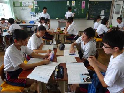 3年1組は道徳、「伝統を創るもの」の授業を行っています。「よりよい学校生活 集団生活の向上」の項目です。
