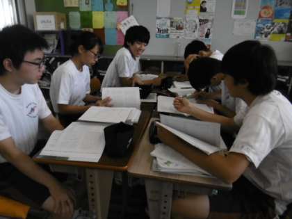 3年2組の国語の授業です。「黒い雨」という小説を読み、「悲惨さや異常さにはどのような種類があったのか」というテーマで話し合っていました。意見を自分の言葉でしっかり言えている人がいて素晴らしかったです。